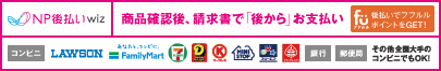 | 支払手数料 | クレジットカード:無料 後払い(コンビニ・郵便局):220円 ※後払い(銀行)の場合、振込手数料はお客様負担となります。 代金引換:370円 |